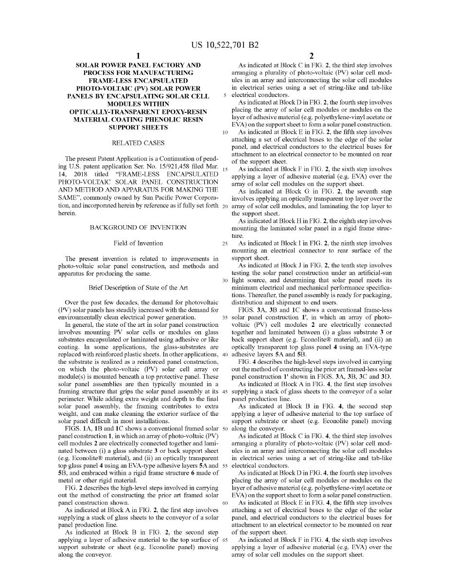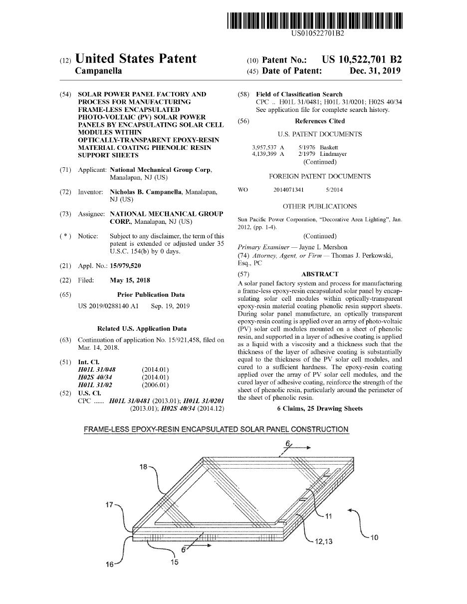 On December 31, 2019, the United States Patent and Trademark Office issued patent number US 10,522,701 B2 to National Mechanical Group Corp., a wholly owned subsidiary of Sun Pacific Holding Corp., for a Frame-Less Encapsulated Photo-Voltaic (PV) Solar Power Panel By Encapsulating Solar Cell Modules Within Optically-Transparent Epoxy-Resin Material Coating a Phenolic Resin Support Sheet. The Company will begin work developing a business plan for expanding on either manufacturing or licensing of the technology in 2020. A copy of the patent is attached hereto.