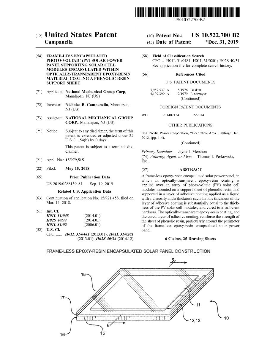 | 99.1 | Patent Number US 10,522,700 B2 issued on December 31, 2019 |