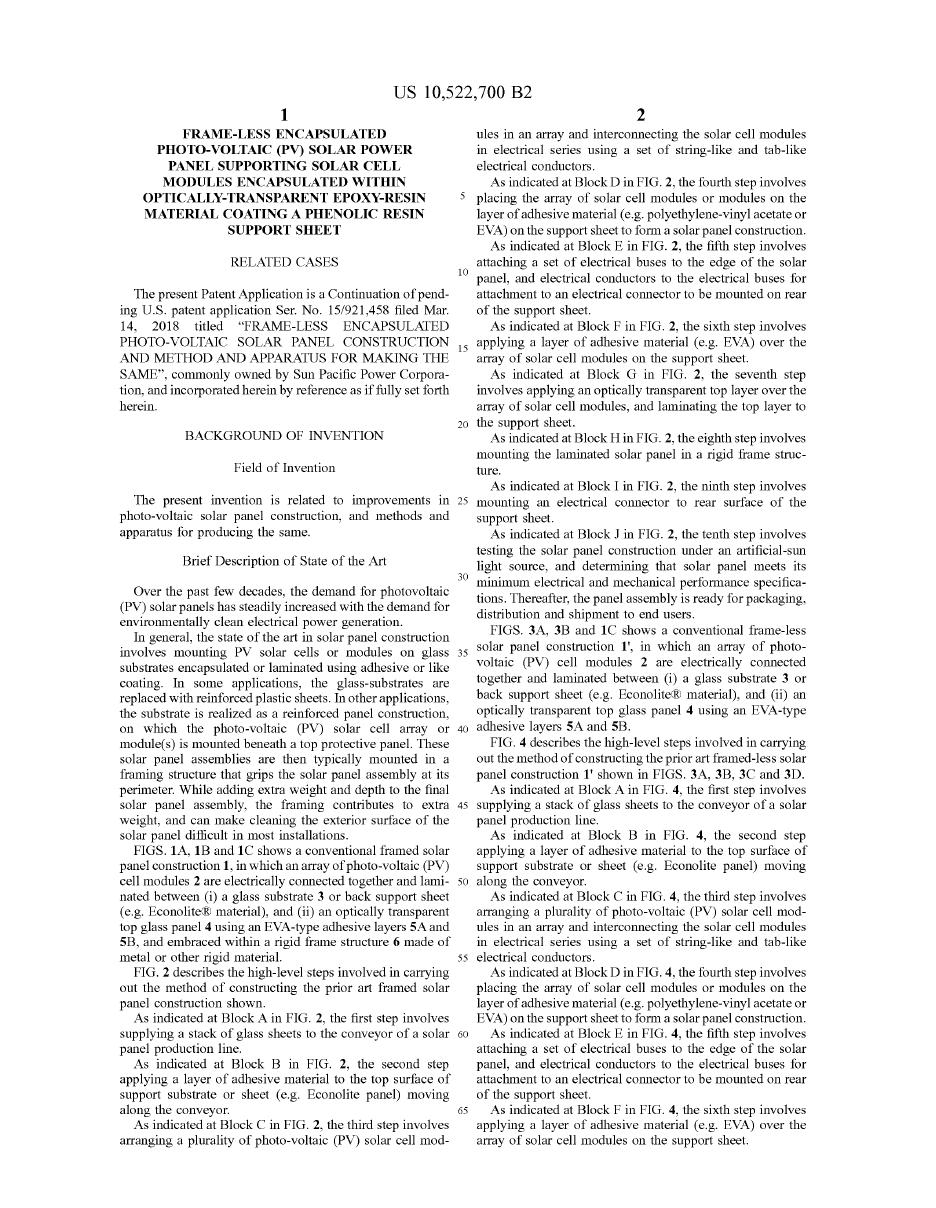 On December 31, 2019, the United States Patent and Trademark Office issued patent number US 10,522,700 B2 to National Mechanical Group Corp., a wholly owned subsidiary of Sun Pacific Holding Corp., for a Frame-Less Encapsulated Photo-Voltaic (PV) Solar Power Panel Supporting Solar Cell Modules Within Optically-Transparent Epoxy-Resin Material Coating a Phenolic Resin Support Sheet. The Company will begin work developing a business plan for expanding on either manufacturing or licensing of the technology in 2020. A copy of the patent is attached hereto.