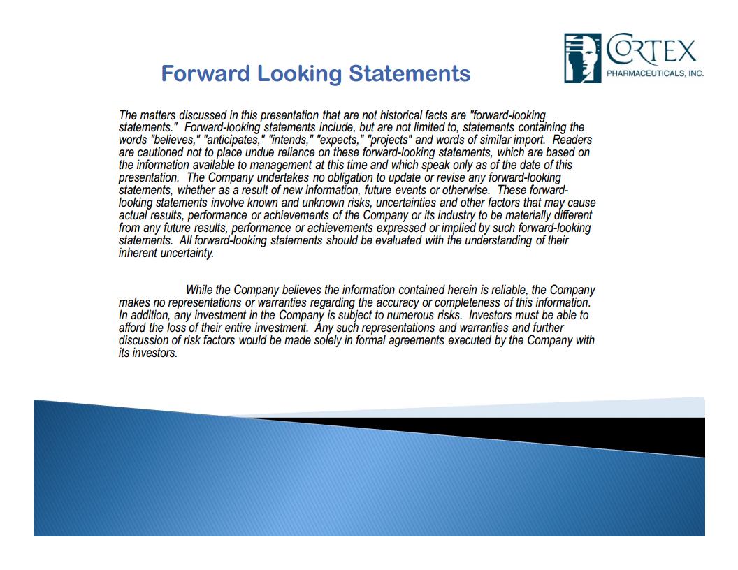 Additional information about Cortex and the matters discussed herein can be obtained on the Company’s website at www.cortexpharm.com or in the Company’s filings on EDGAR at www.sec.gov.