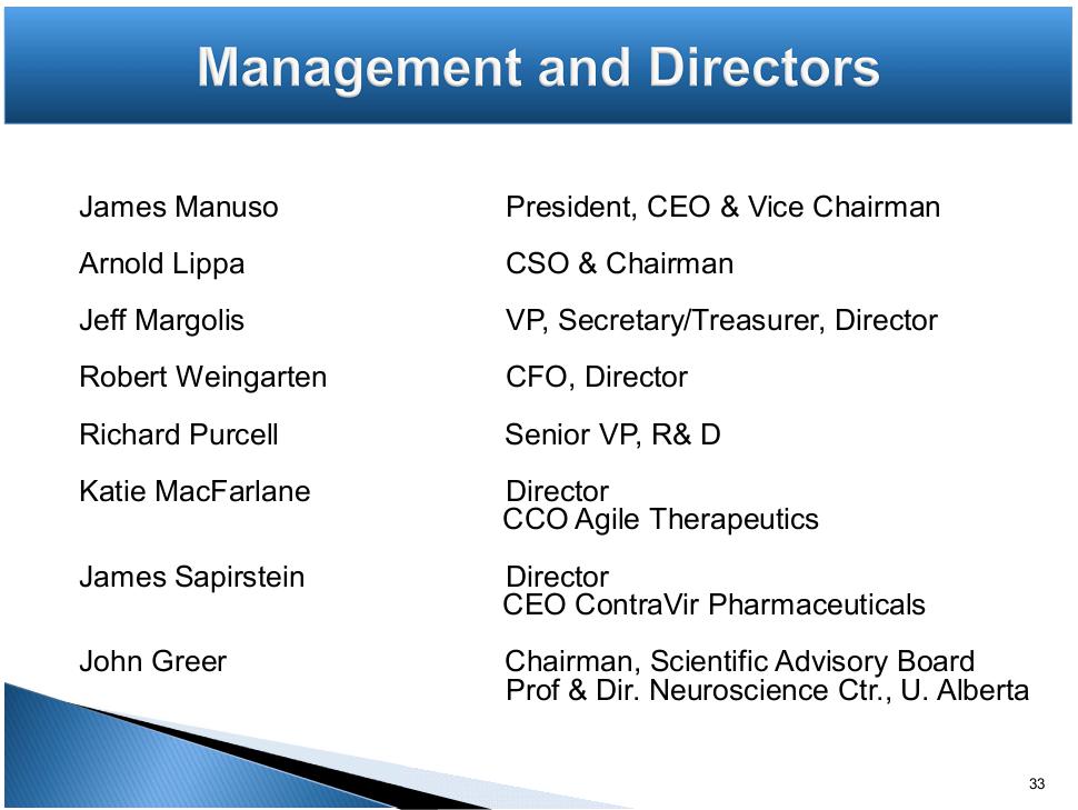 Special Note Regarding Forward-Looking Statements: Certain statements included or incorporated by reference in this news release, including information as to the future financial or operating performance of the Company and its drug development programs, constitute forward-looking statements. The words “believe,” “expect,” “anticipate,” “contemplate,” “target,” “plan,” “intend,” “continue,” “budget,” “estimate,” “may,” “schedule” and similar expressions identify forward-looking statements. Forward-looking statements include, among other things, statements regarding future plans, targets, estimates and assumptions. Forward-looking statements are necessarily based upon a number of estimates and assumptions that, while considered reasonable by the Company, are inherently subject to significant business, economic and competitive uncertainties and contingencies. Many factors could cause the Company’s actual results to differ materially from those expressed or implied in any forward-looking statements made by, or on behalf of, the Company. Due to these various risks and uncertainties, actual events may differ materially from current expectations. Investors are cautioned that forward-looking statements are not guarantees of future performance and, accordingly, investors are cautioned not to put undue reliance on forward-looking statements due to the inherent uncertainty therein. Forward-looking statements are made as of the date of this news release and the Company disclaims any intent or obligation to update publicly such forward-looking statements, whether as a result of new information, future events or results or otherwise.