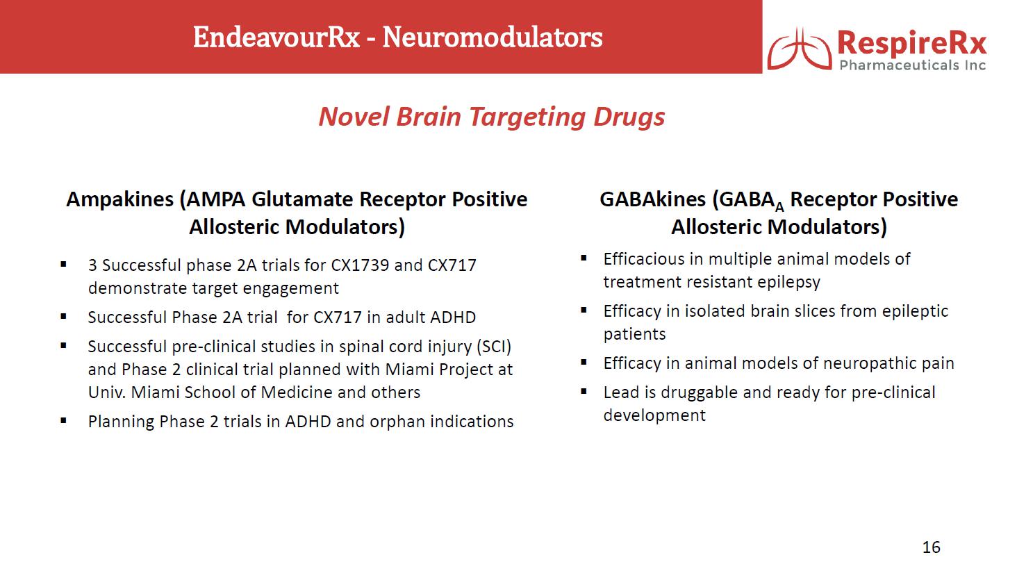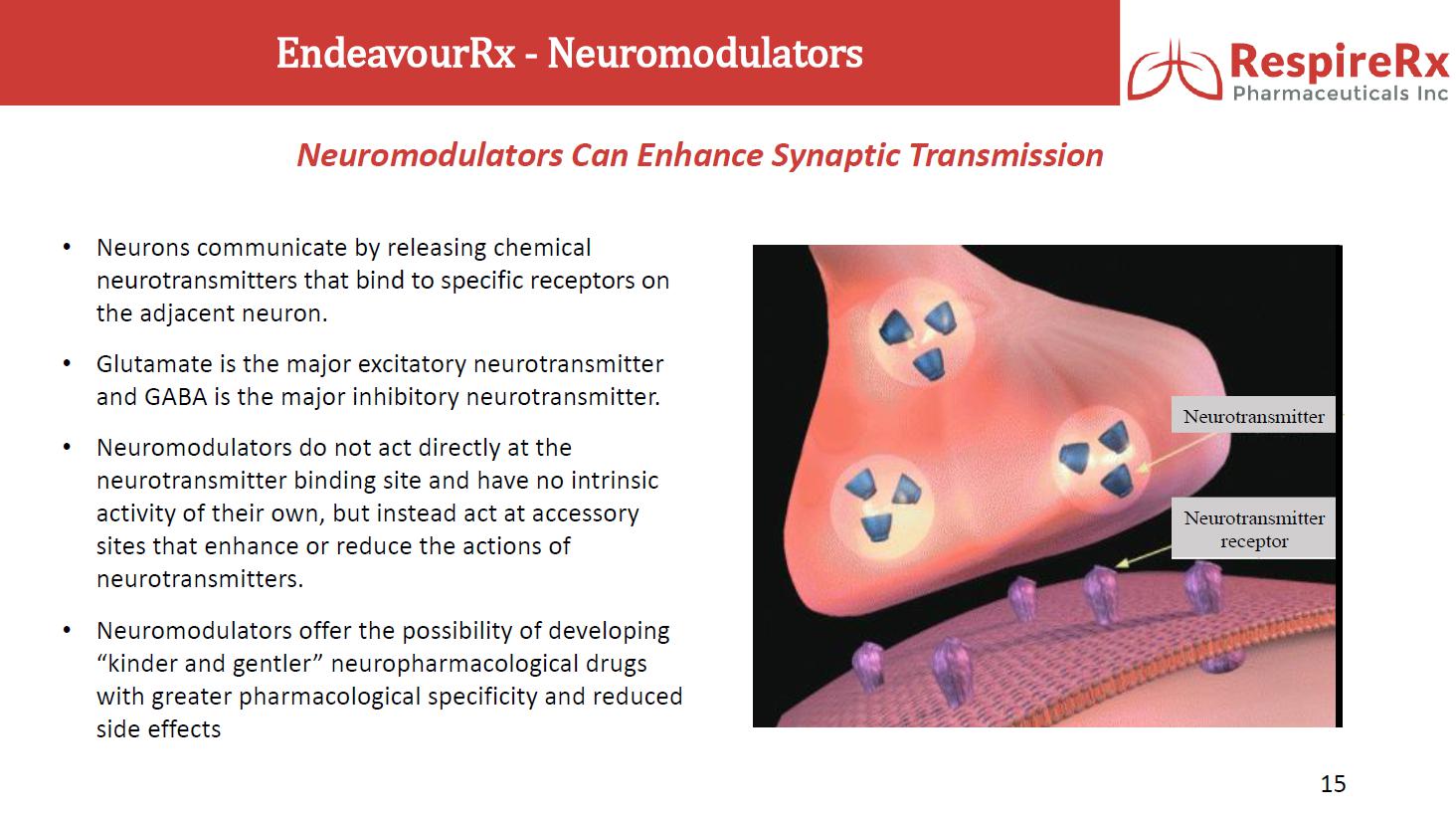 (ii) EndeavourRx is developing neuromodulators, which include AMPAkines and GABAkines, proprietary compounds that positively modulate (positive allosteric modulators or “PAMs”) AMPA-type glutamate receptors and GABAA receptors, respectively.