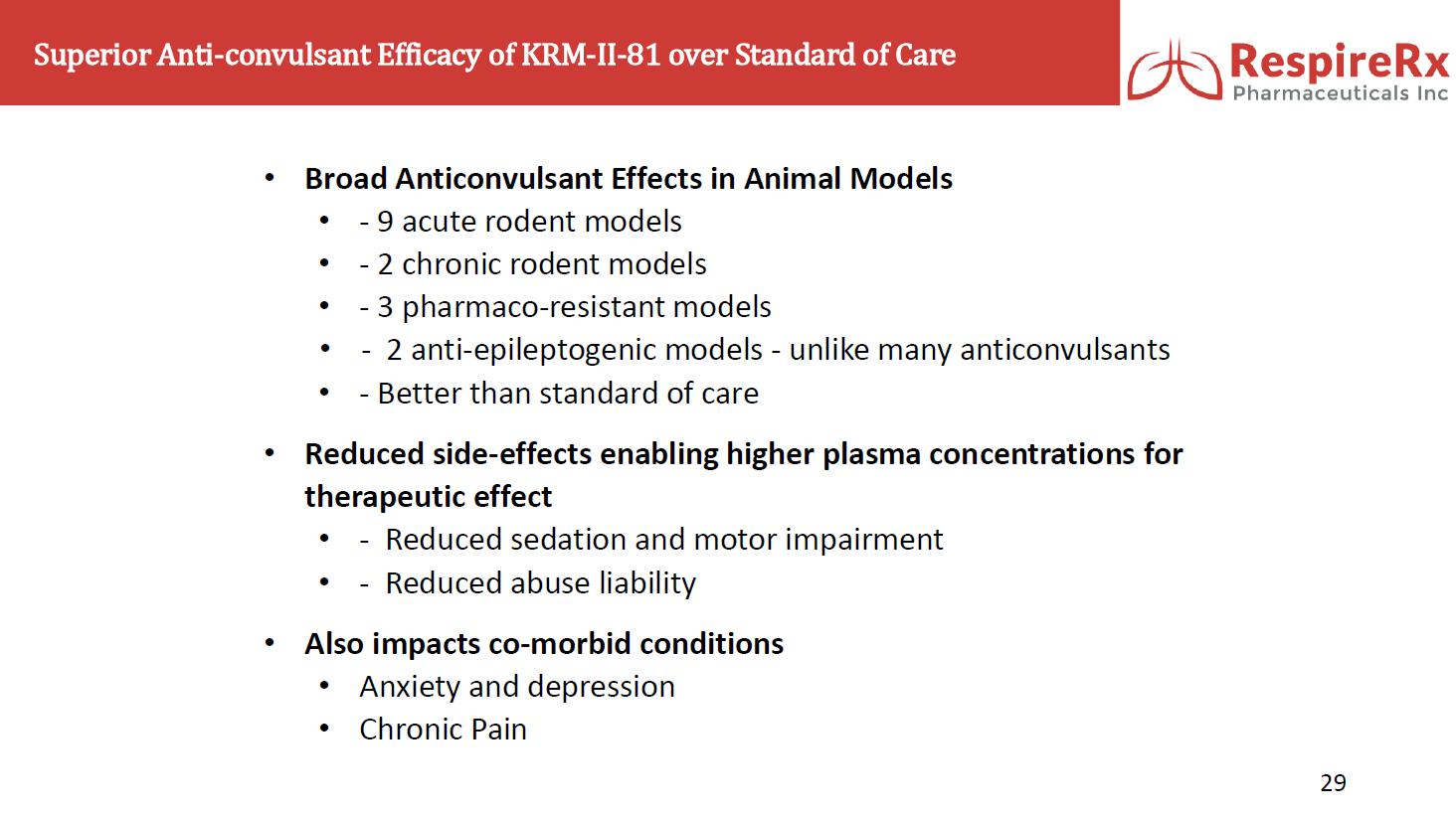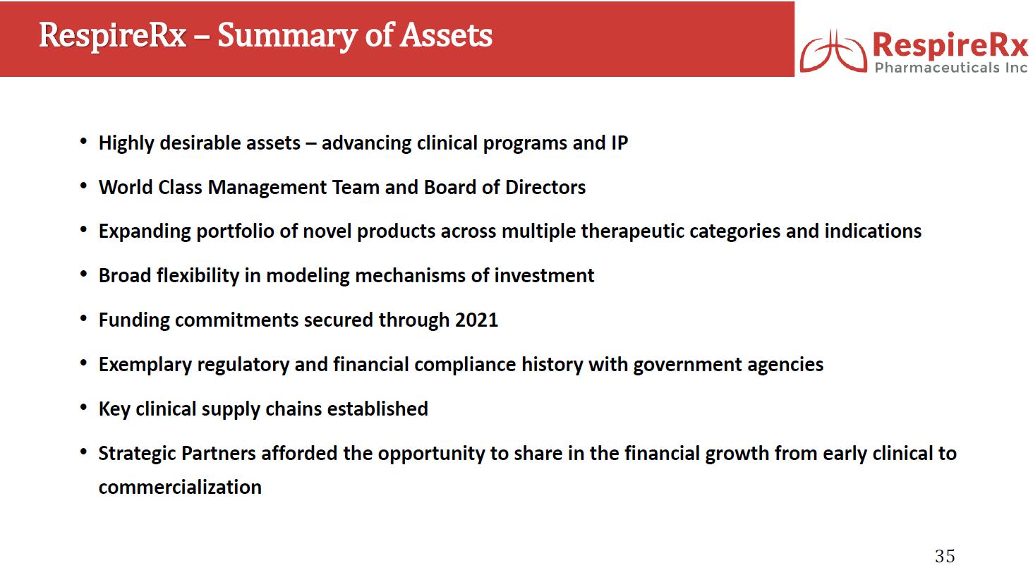 | RespireRx Pharmaceuticals Inc. | Company at a Glance |