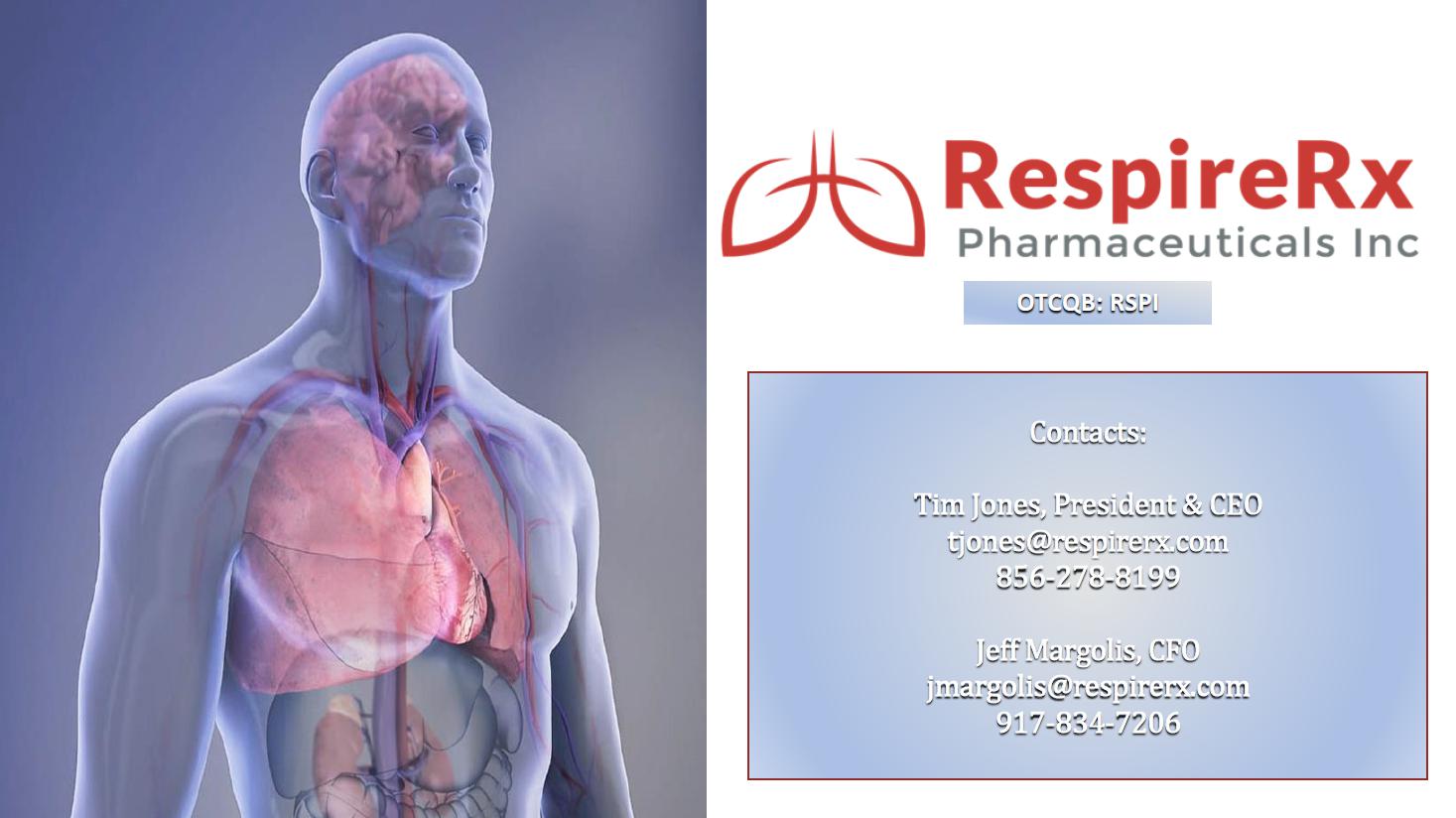 The in-person portion of the Biotech Showcase™ is taking place from January 10 – 12, 2022 in San Francisco, CA and virtual portion is taking place from January 17 - 19, 2022. Mr. Jones discusses the basis of the science behind RespireRx’s portfolio of clinical candidates, the Company’s short-term objectives and the potential global commercial opportunities that could be realized for the Company’s novel and differentiated suite of products, which address a number of neurological and psychiatric disorders for which there are currently quite limited and inferior treatment options.