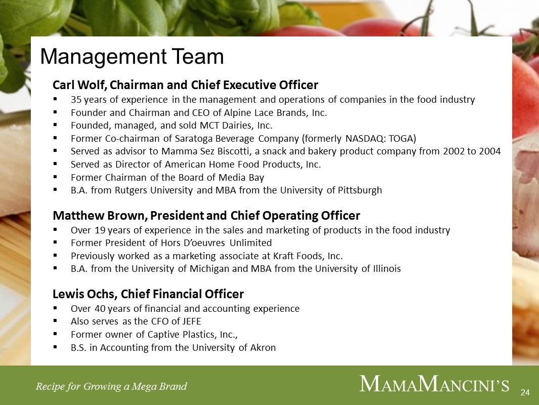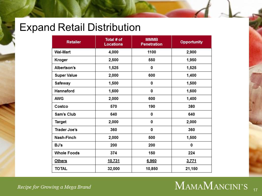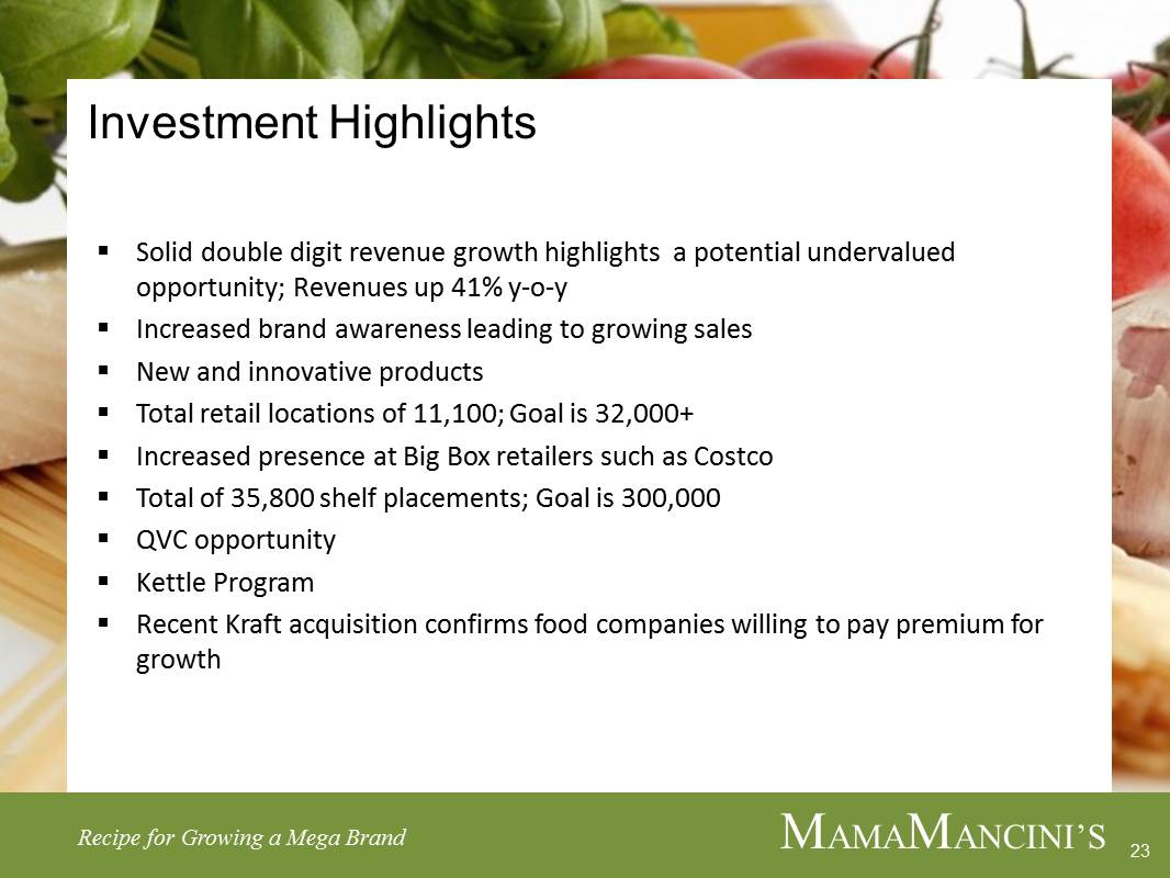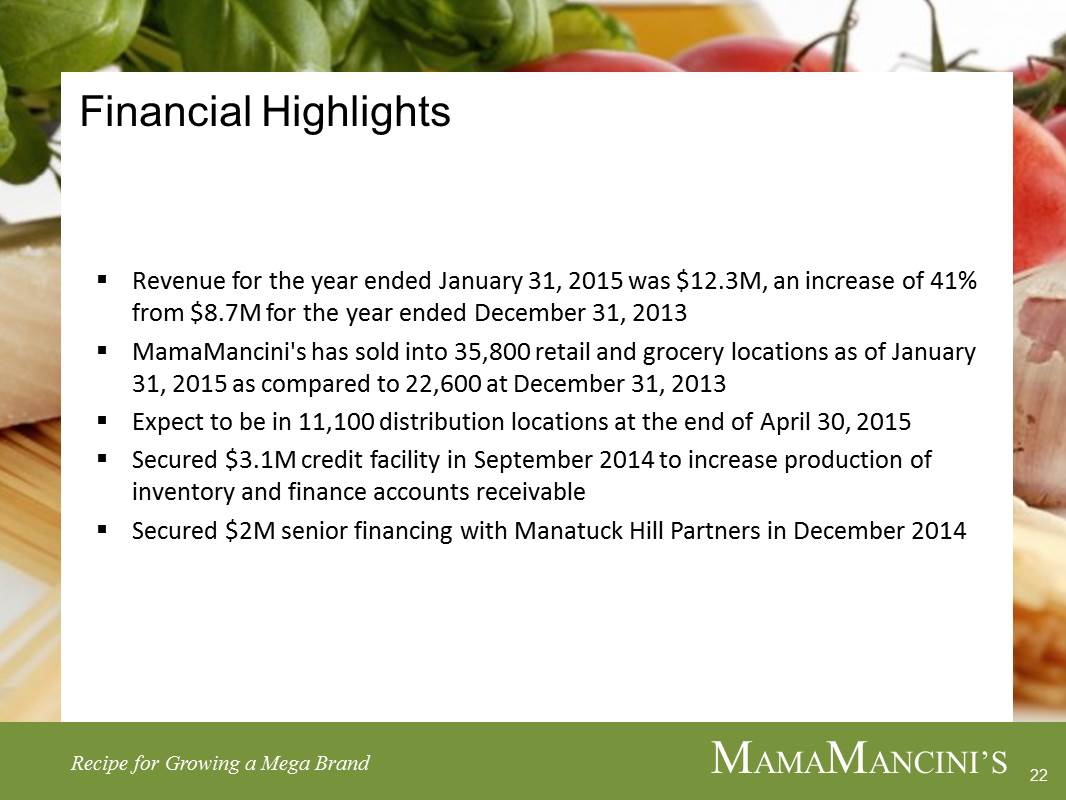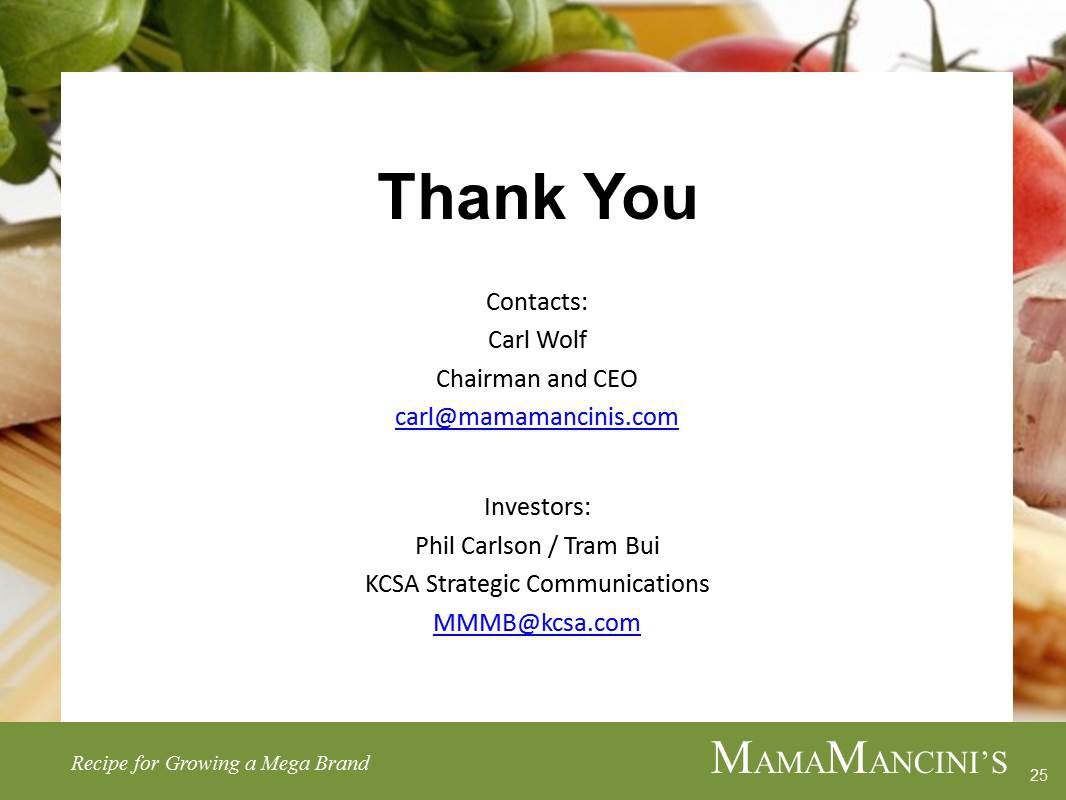MAMAMANCINI’S HOLDINGS, INC.