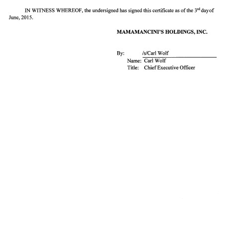 TO: MAMAMANCINI’S HOLDINGS, INC.