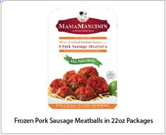 MamaMancini’s products are now sold in over 4,000 retail food stores with an average of four different products per location totaling 16,000 spots on shelves in the 4,000 retail locations, throughout the United States. MamaMancini’s products are sold in the frozen meat case, the frozen Italian specialty section, the fresh meat case, the deli (in bulk and grab n go pre-packaged formats) as well as hot bars and sandwich shops in food retailers.
